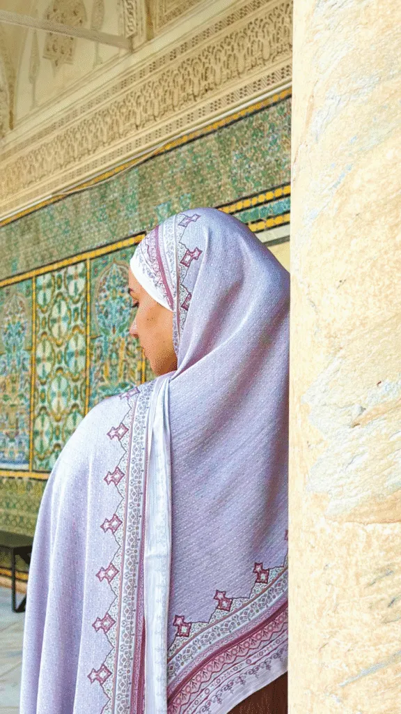 From vibrant city streets to peaceful coastal sunsets, from everyday denim looks to refined couture moments, our hijab scarves move effortlessly with you. Thoughtfully designed to adapt to your lifestyle, each foulard frames your look, defines your personality, and adds a subtle touch of confidence and grace.